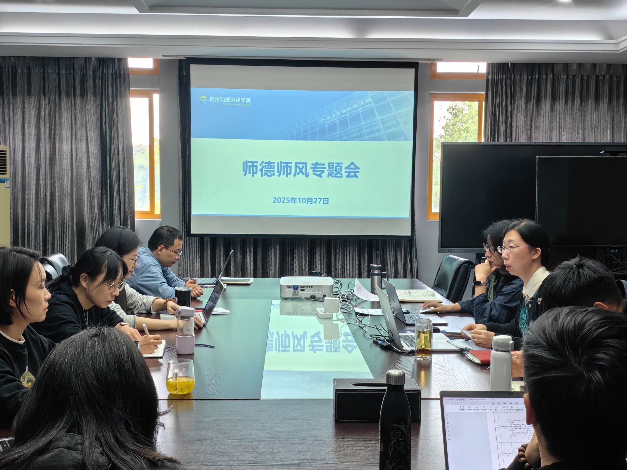 为进一步加强师德师风建设,增强教师的使命感和责任感,10月27日,动漫游戏学院开展了师德师风主题教育活动。活动由学院党总支书记沈音乐主持,分院教师代表参加了本次活动。