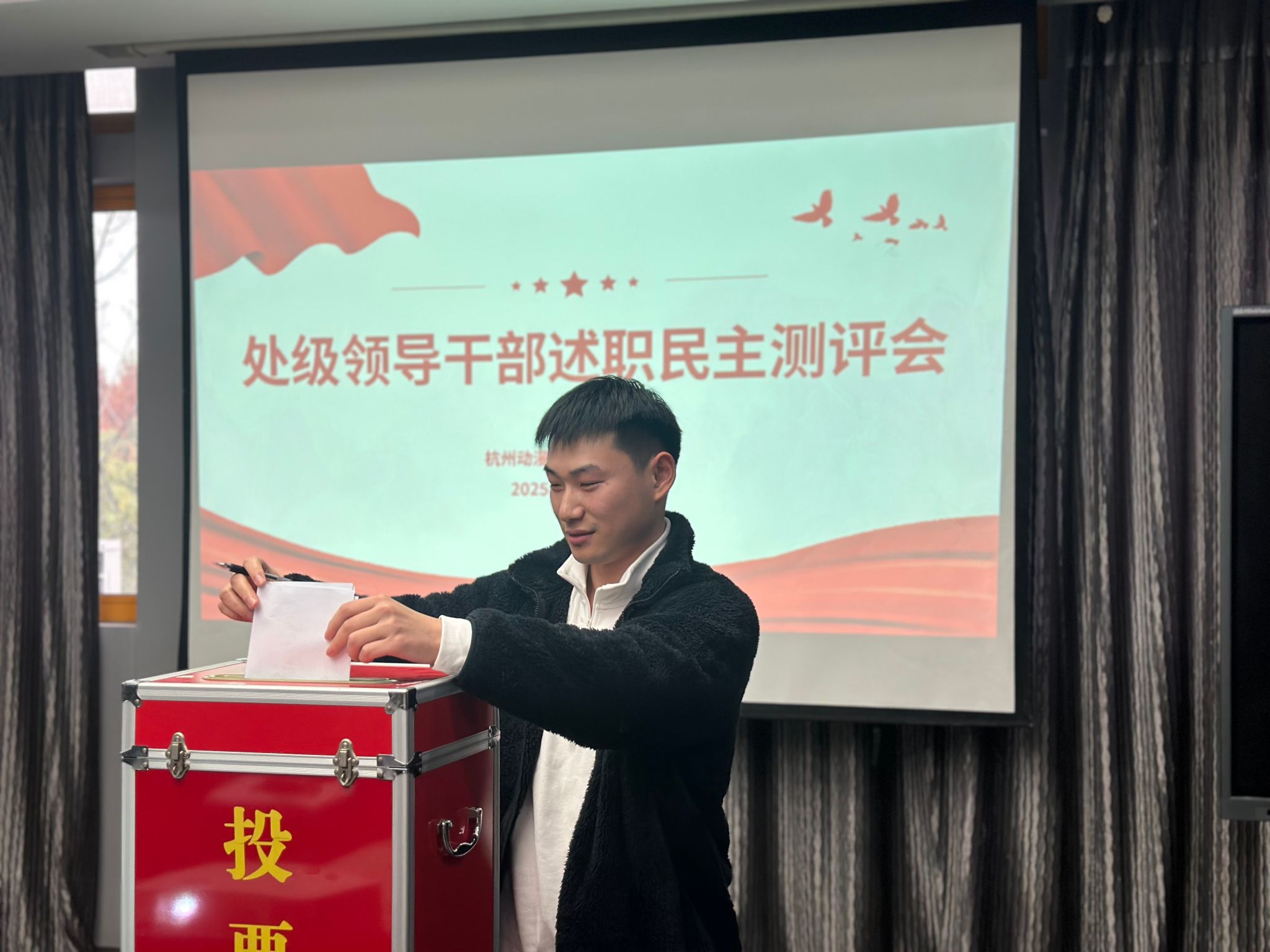 根据学校党委统一部署,12月10日,动漫游戏学院于动漫307会议室举行2025年度处级领导干部述职民主测评会。校党委组织部丁文到会指导,学院全体教职工参加,会议由学院党总支书记沈音乐主持。