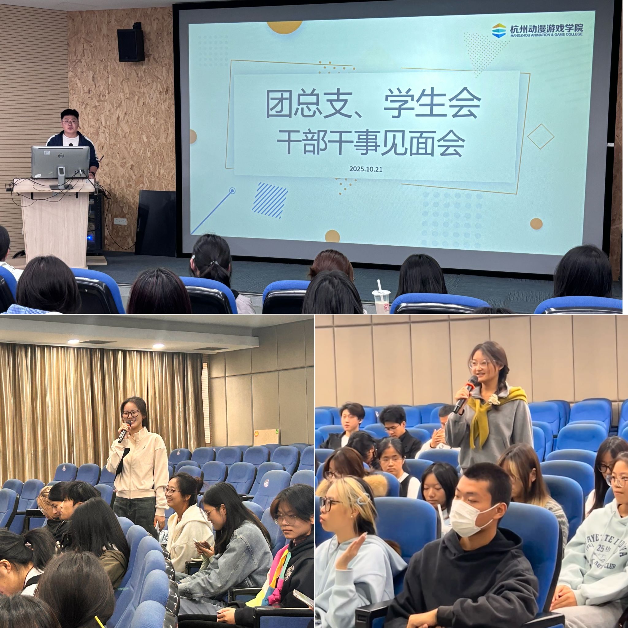 10月22日,动漫游戏学院团总支学生会在动漫楼201报告厅成功召开了2025年团学实习干事见面会。本次见面会由主席团成员史彤主持,学院团总支书记吴浥铭老师、团总支学生会主要干部及全体新生实习干事共同参与。